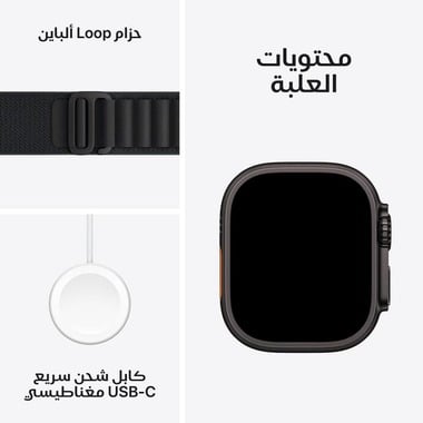 ساعة ابل الترا ارتقِ بتجربتك الذكية مع أبل واتش ساعة ذكية قوية وعصرية من التيتانيوم الأسود تجمع بين الأداء الفائق والصحة والرياضة في جهاز واحد.
