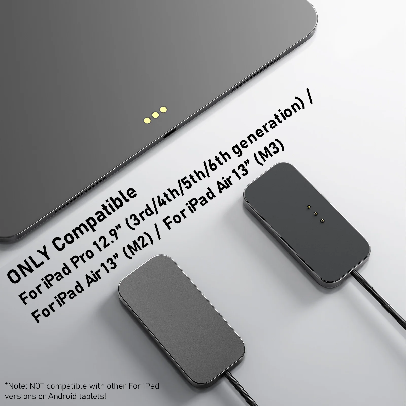 شاحن لاسلكي مغناطيسي جديد لجهاز iPad Pro 13 بوصة/12.9 بوصة/11 بوصة/10.9 بوصة شاحن موصل ذكي سريع الشحن مع سلك 2 متر لجهاز iPad Pro
