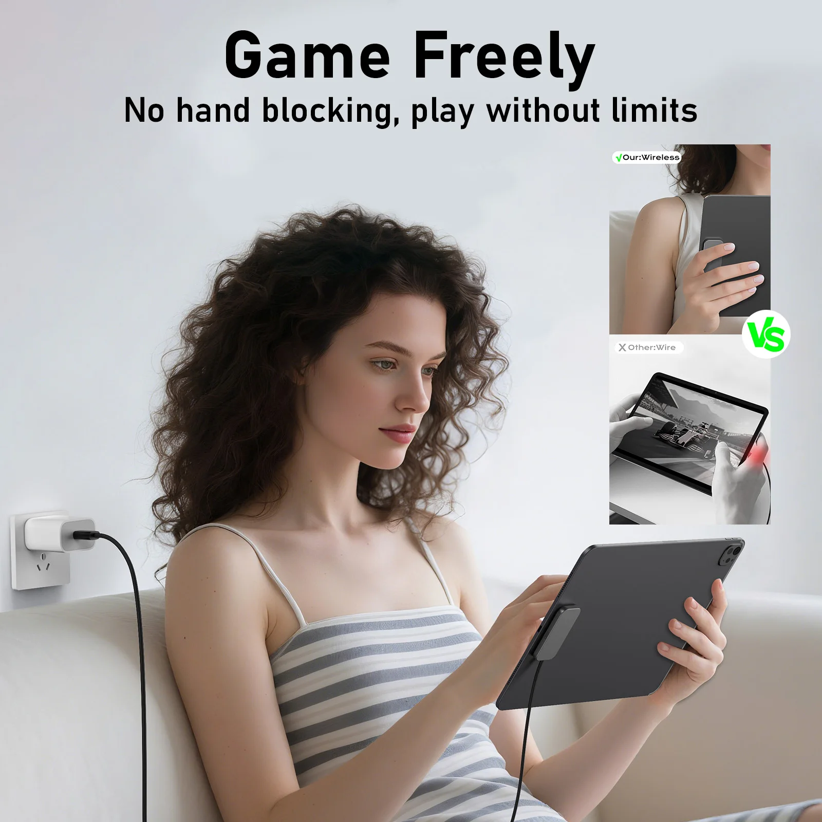 5. رفيع للغاية وخفيف الوزن:بسمك 0.2 بوصة فقط، فإن وسادة الشحن السريعة هذه غير مرئية تقريبًا عند تركيبها، مما يسمح بحركة اليد غير مقيدة.يضمن السلك بطول 2 متر استخدامًا مرنًا دون إعاقة تجربة العمل أو الألعاب أو البث.